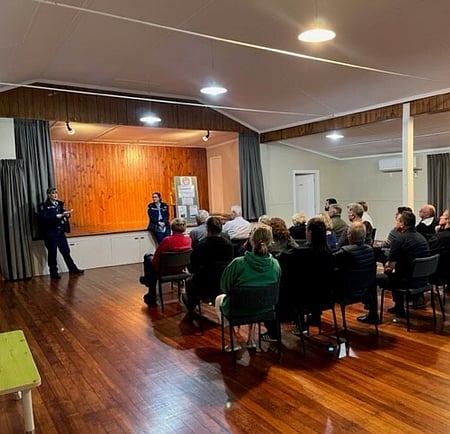 Our recent visit to the Fielday’s Neighbours meeting was a welcome chance to reconnect with the Mystery Creek and Tamahere communities and to talk about the importance of strong neighbourhood connections and practical steps to reduce crime. The gathering had its usual warm, community‑minded feel, and it was great to see so many familiar faces again.