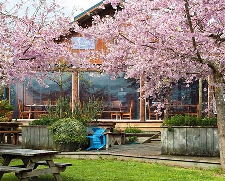 This was the scene of a neighbourhood meeting for the residents of Ihimaera Terrace late September. It was a very popular meeting, so we snuggled together on the beautiful deck of the Irresistablue café with a backdrop of gorgeous pink blossoms.